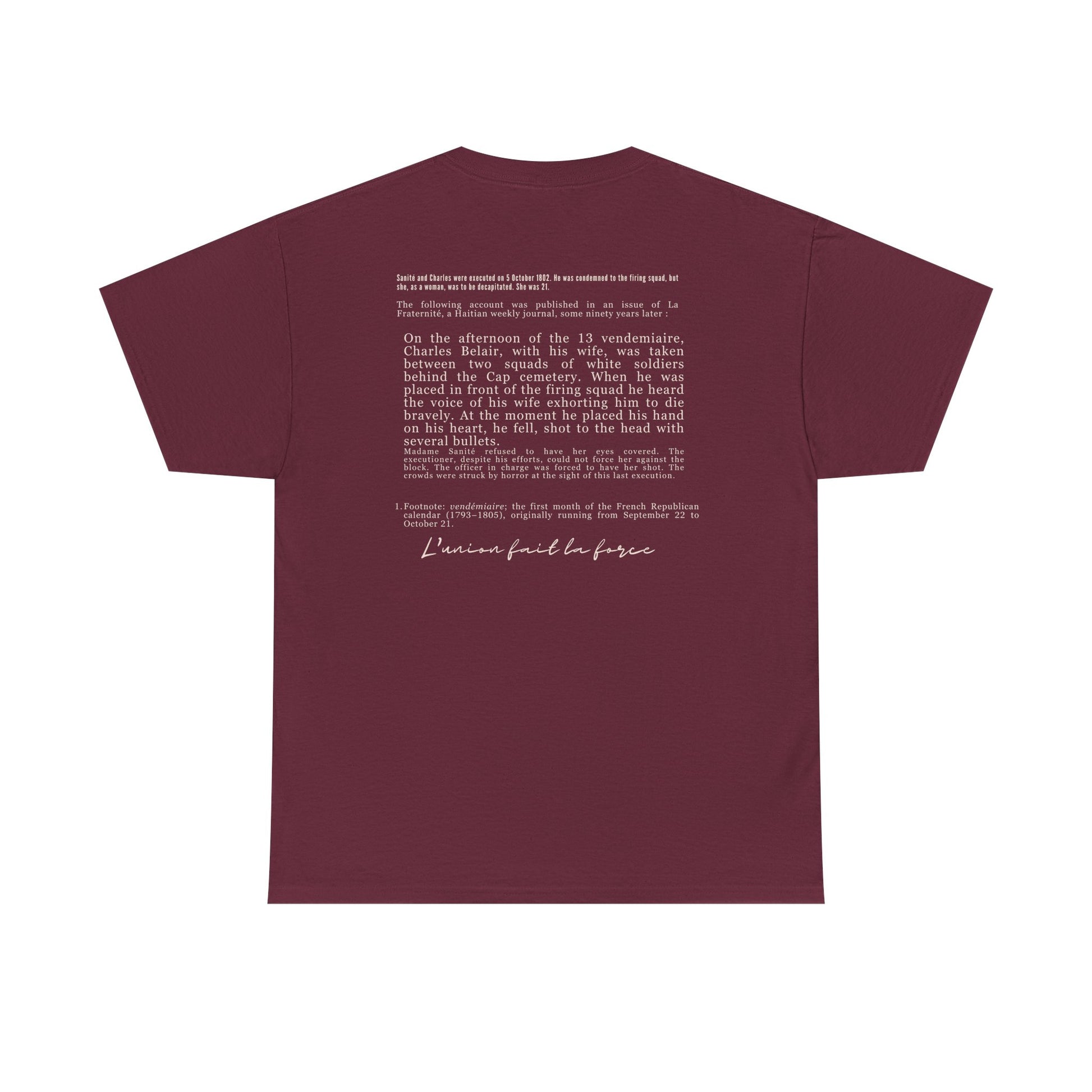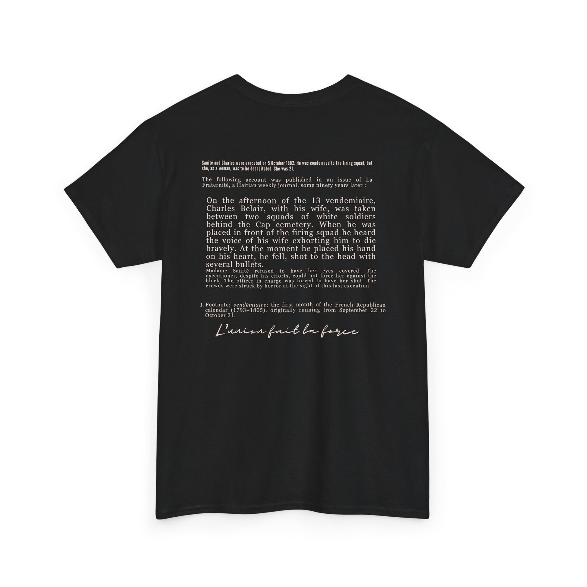 Sanité and Charles were executed on 5 October 1802. He was condemned to the firing squad, but she, as a woman, was to be decapitated. She was 21.